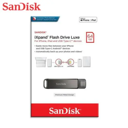 فلش مموری سن دیسک مدل iXpand Flash Drive Luxe USB Type-C And Lightning ظرفیت 64 گیگابایت