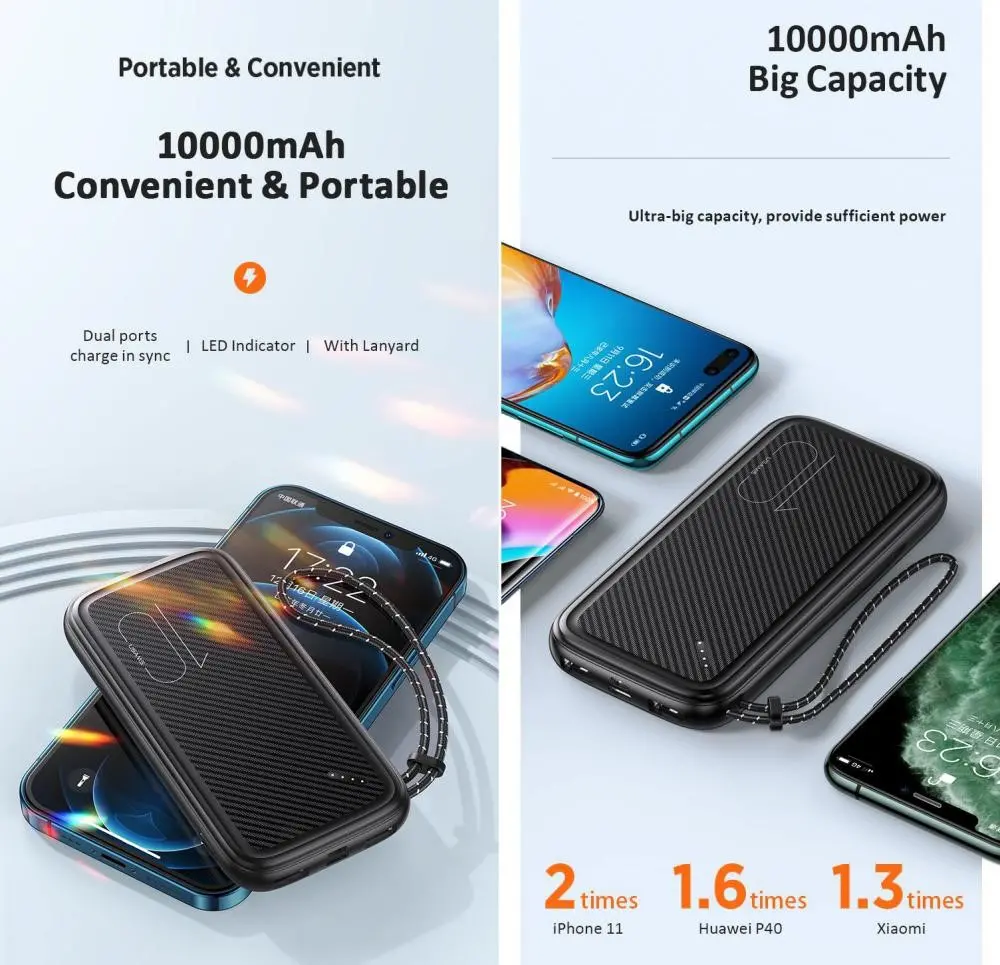این پاوربانک یوسمز با ارائه توان خروجی 10 وات طراحی شده تا تجربه شارژ مناسب و ایمن را برای کاربران فراهم کند. هرچند که سرعت شارژ آن در دسته شارژ سریع بسیار قدرتمند قرار نمیگیرد، اما برای شارژ اکثر گوشیها و گجتهای قابلحمل کاملاً مناسب و کارآمد است. وجود دو پورت خروجی USB-A امکان شارژ همزمان دو دستگاه را فراهم کرده و این قابلیت برای کاربرانی که دو گوشی یا ترکیبی از گوشی و لوازم جانبی دارند بسیار ارزشمند است. ورودیها شامل micro USB و Type-C هستند و همین تنوع باعث شده شارژ کردن خود پاوربانک بسیار آسان باشد. استفاده از سیستم مدیریت هوشمند انرژی کمک میکند که جریان ورودی و خروجی کنترل شود و از آسیب احتمالی به باتری دستگاهها جلوگیری گردد. این پاوربانک هنگام کارکرد داغ نمیشود و توان خروجی آن ثابت میماند که یک مزیت مهم در محصولات میانرده محسوب میشود. قابلیت شارژ دستگاههای مختلف مانند گوشیهای اندروید، آیفون (با کابل مناسب)، هدفون، پاور کیتها و اسپیکرهای بلوتوث بدون افت توان اجرا میشود. ویژگی ایجاد جریان مناسب برای شارژ دستگاههای کممصرف نیز باعث شده دستگاههایی مثل ساعت هوشمند هم بدون آسیب شارژ شوند.